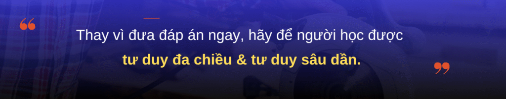 Ý tưởng tương tác: Sau khi phân tích tình huống hoặc đưa ra quyết định, người học được yêu cầu thiết kế phản hồi cho người khác. Thay vì trả lời nên làm gì, họ tập trung vào cách giải thích, hướng dẫn hoặc huấn luyện.